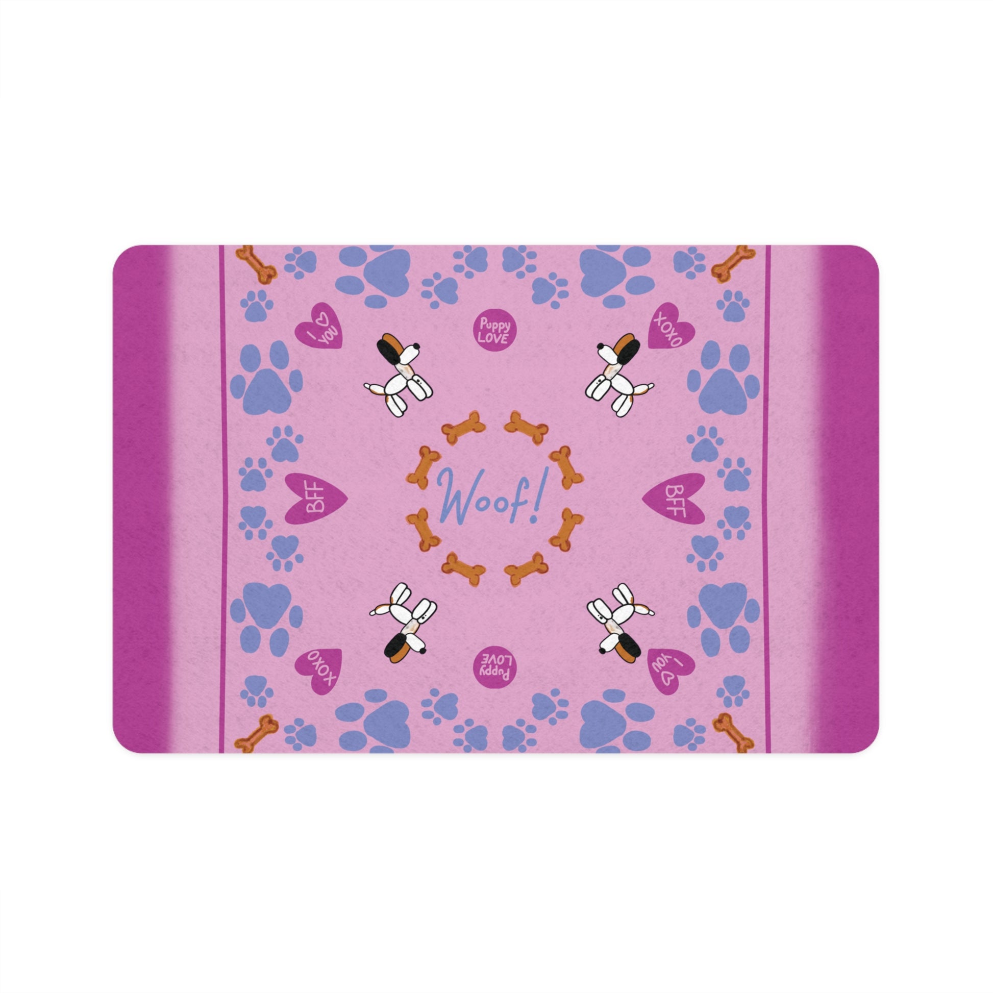 Pink 'Woof!' - Valentine Day Dog Food Mat (12x18)